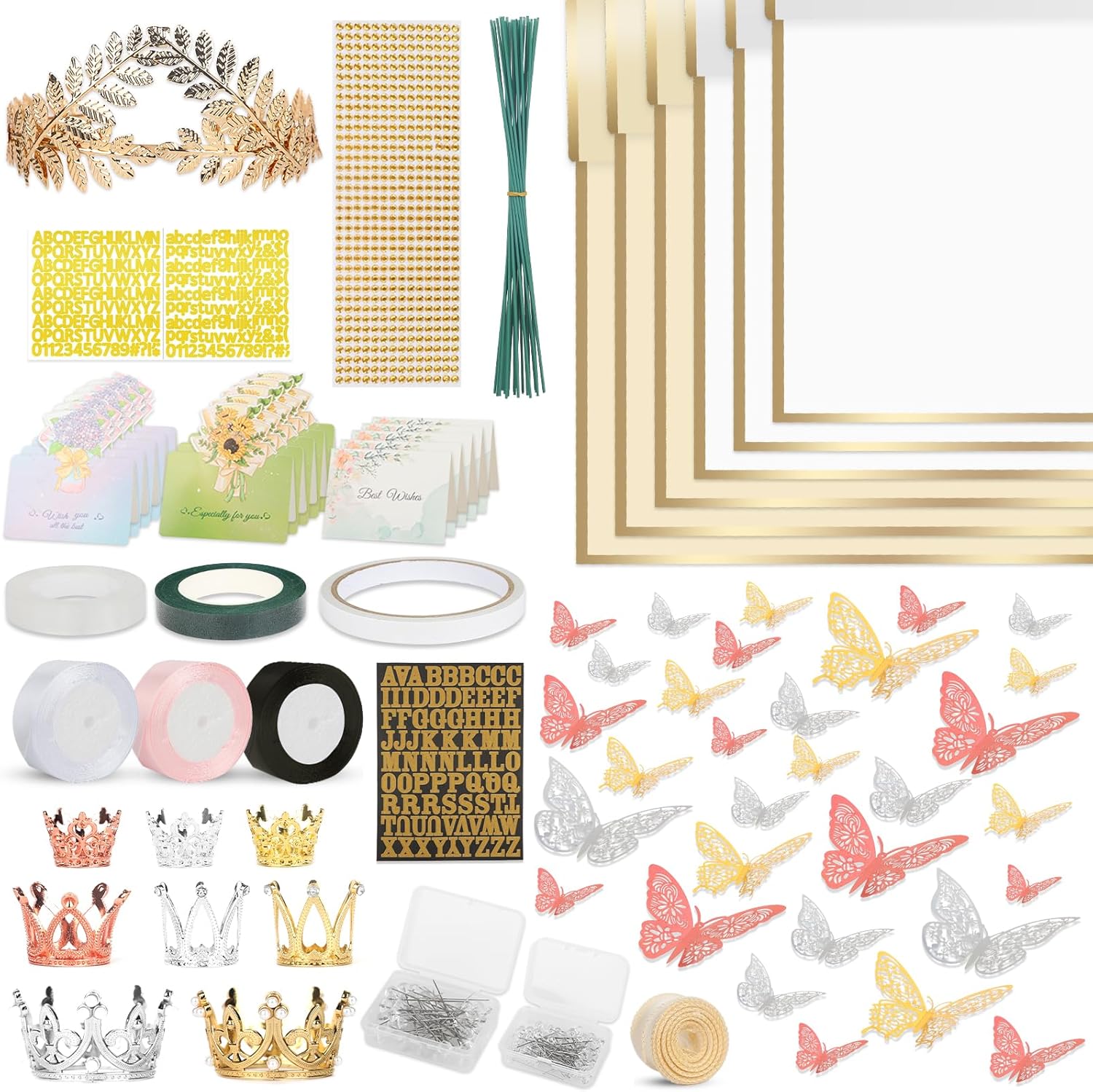 | Included Components | 60 Sheets Waterproof Floral Wrapping Paper, 36 Butterflies,8 Crowns,1 Leaf Crown Headband,4 Ribbons, 15 Cards,100 Diamond Pins, 30 Floral Wire, 3 Stickers, 3 Tapes |