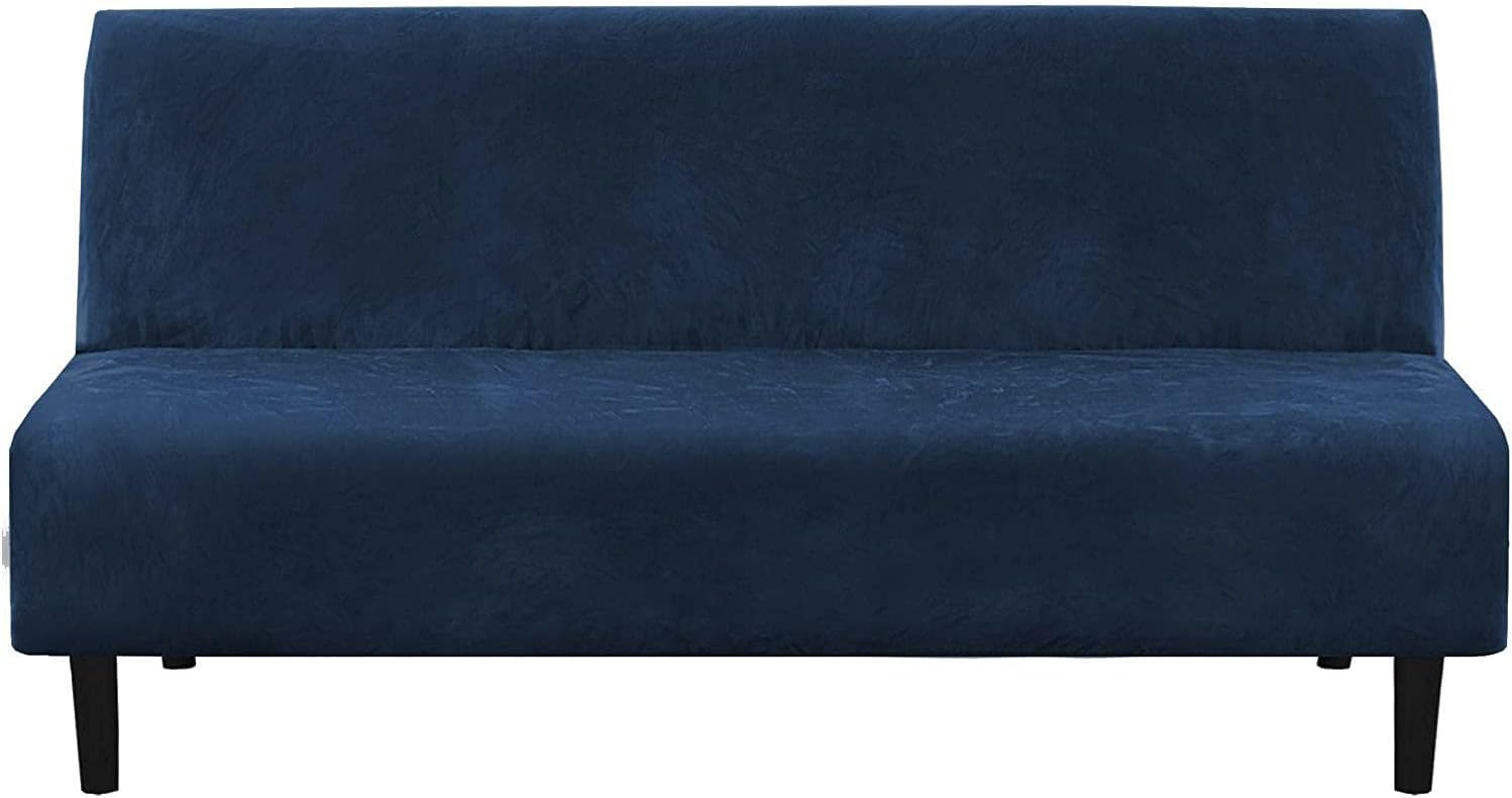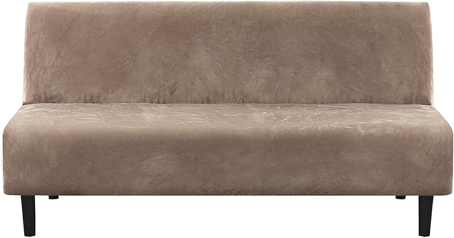Specifications:Name: Sofa Bed Cover without ArmrestsMaterial: Velvet fabricApplicable size: Fit for sofa length 68-85in(172.7-215.9cm); Sofa width 28-40in(71.1-101.6cm); Backrest height 28-40in(71.1-101.6cm)Features:Thick plush fabric, soft and comfortable, high elasticity, large stretch space, fit for most armless sofas. High recommended for both leather and cloth sofa.This high stretch sofa slipcovers come with elastic bands underneath which provide full coverage and protection for your futon. Easy to put on and take off.Exquisite workmanship, perfect sewing process, futon slipcover for daily use. No fading, machine washable, wrinkle resistant.The Package Includes:1 × Armless Sofa CoverKind Tips:Colors may be slightly different from what you see due to different monitors or screens.Since the sofa cover is elastic, the size may vary slightly, please understand.This sofa cover is only suitable for armless sofa bed, please check sofa bed style and size.