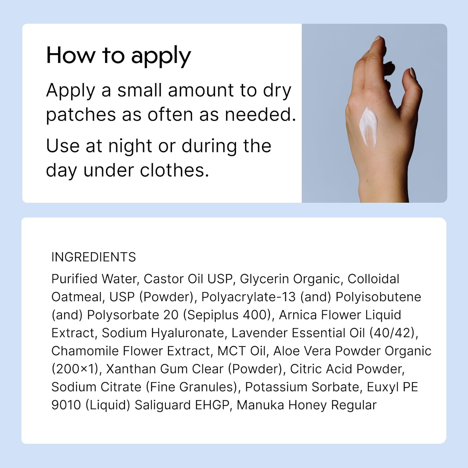 | Specific Uses For Product | Dryness, Eczema-prone skin, Flaky skin, Itch, Redness |