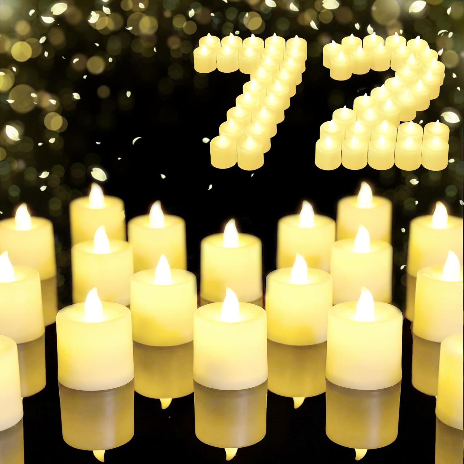 | Included Components | 72 x Yellow tea lights candles |