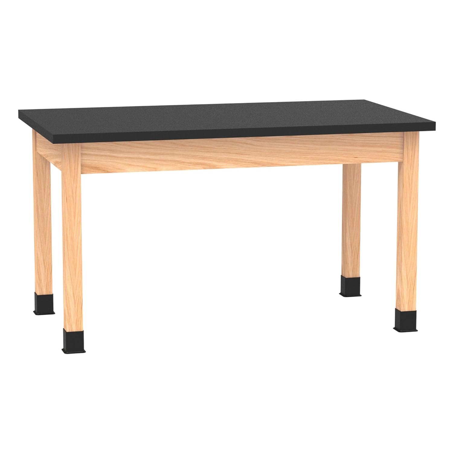 Plain Apron Tables are available in a variety of sizes, with multiple top options to choose from. These tables are built for years of dependable service. Legs and aprons are constructed of solid wood (red oak or maple) and are smoothly machined. They are finished with a chemical resistant, earth-friendly UV clear sealer. Aprons are constructed of solid wood (red oak or maple) and measure 13/16"D x 4-1/2"H. Heavy-duty 13-gauge steel corner braces firmly secure the 2-1/4" square solid wood (red oak or maple) legs with 5/16" hanger bolts installed. Legs ship KD and are attached to apron with nuts and washers supplied. All tables are equipped with non-skid adjustable glides for precise leveling and for prevention of rocking on uneven floors. Tables are supplied with black rubber leg boots which offer protection against scuffing and chemical spills. Weight capacity of 500 lbs.