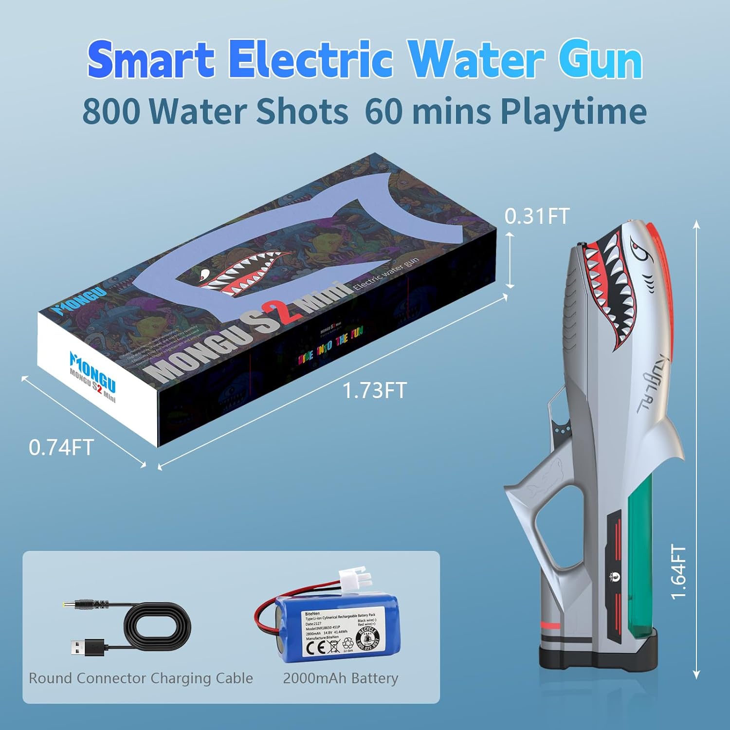 Electric Water Guns for Adults & Kids Water Blaster Squirt Guns Auto Suction, Over 800 Blasts Soaker Water Gun High Powered Up to 32.8 FT for Summer Beach Pool Backyard Outdoor Toys (Shark Silver)