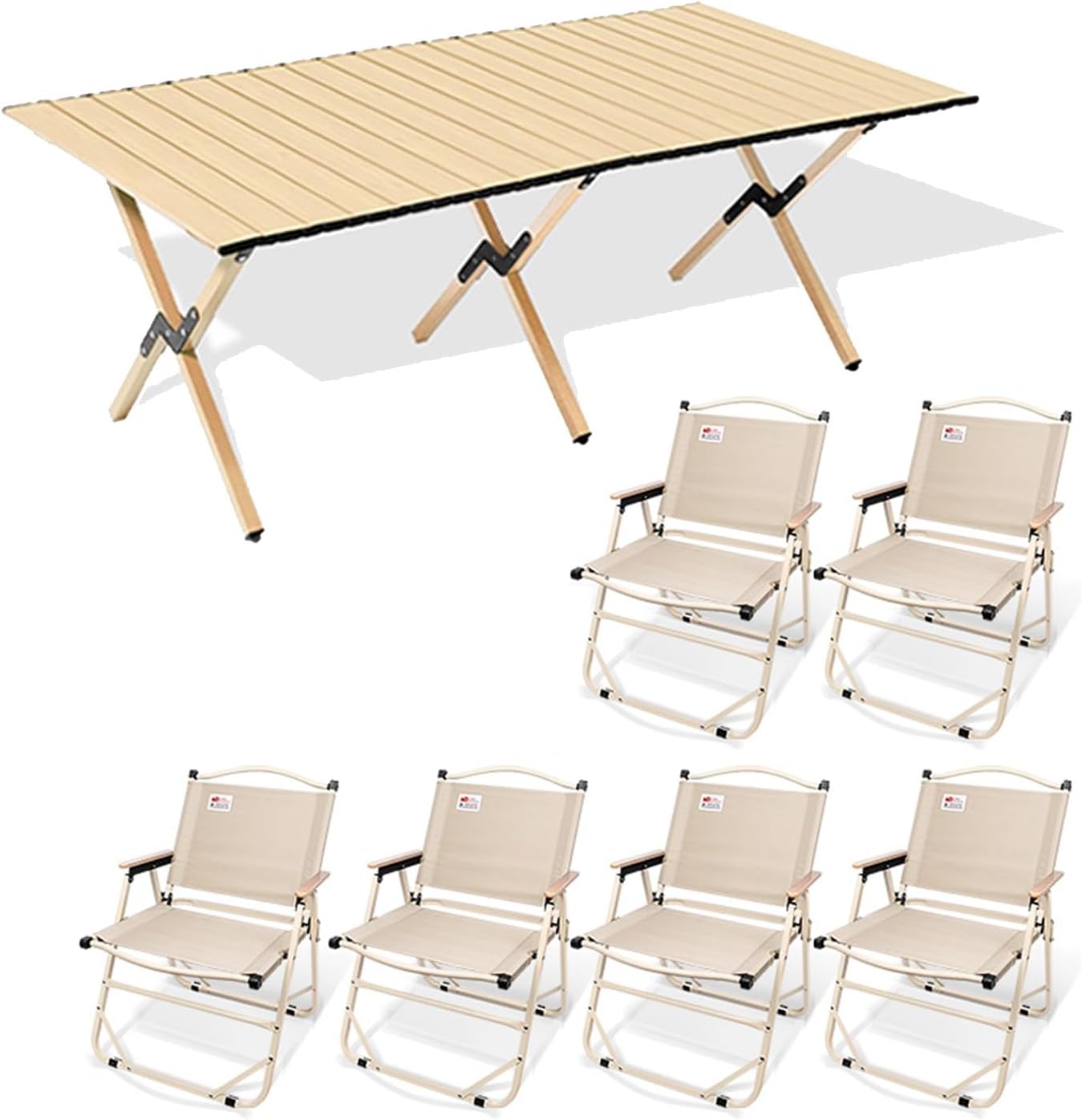 Welcome to my shop~This foldable camping table and chair features a tabletop and frame made of high-quality carbon steel with iron details. It's both lightweight and sturdy, offering high strength, stability, and load-bearing capacity for exceptional durability. It assembles tool-free in 3-4 minutes, and its light weight makes it easy for even women to lift.This camping table and chair is designed for easy storage, with a roll-up tabletop and foldable legs. It comes with a dedicated storage bag for convenient transport. It's also versatile and suitable for a wide range of indoor and outdoor spaces, including backyards, poolsides, and balconies, creating a cozy and relaxing space.- Name: Outdoor Folding Table and Chair Set- Color: Khaki, Black- Material: Carbon Steel, Oxford Cloth- Table Dimensions: 116.5*59.5*46cm/45.9*23.4*18.1in, 146*70*46cm/57.5*27.6*18.1in- Chair Dimensions: 53.42*63cm/20.9*16.5*24.8in, 53*52*78cm/20.9*20.5*30.7in- Suitable for a variety of outdoor occasions: camping, picnics, family outings, garden parties, RV vacations, hiking, fishing, barbecues, travel, and parks.- Includes: Folding camp chairs, folding table, and carrying/storage bag.Safety Warning: When used outdoors, the chairs must not exceed a weight limit of 100kg, and the table must not exceed a weight limit of 75kg. Please ensure the table is properly installed and secured.