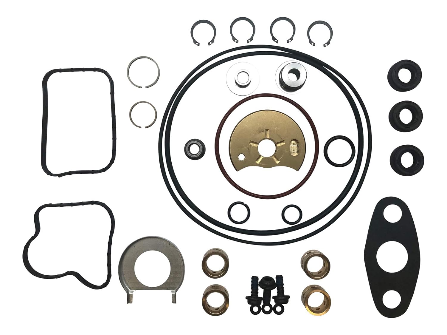 2007 - 2012 Dodge Ram Holset Cummins 6.7 HE341VE HE351VE Turbo Rebuild Kit & 60mm Drop-In Billet Compressor Wheel Cummins 6.7 VGT Turbo Rebuild Kit Includes VGT Seals piston rings (Front and Rear) Thrust Bearing Journal Bearings (2) Thrust Collar + Thrust Spacer Large Orings (2) Small Screw orings (4) Bearing Retaining Clips (4) Oil Deflector Compressor Nut 60mm Billet Compressor Wheel