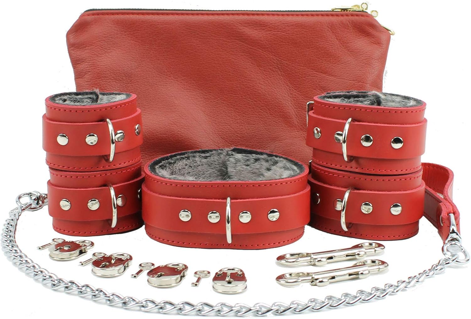 Elevate your play with the Atlanta BDSM kit, a luxurious leather sex toy kit crafted for comfort, durability, and exploration. This stylish set includes wrist cuffs, ankle cuffs, a wide collar with a metal leash, and hook connectors for bondage play or bedroom roleplay.