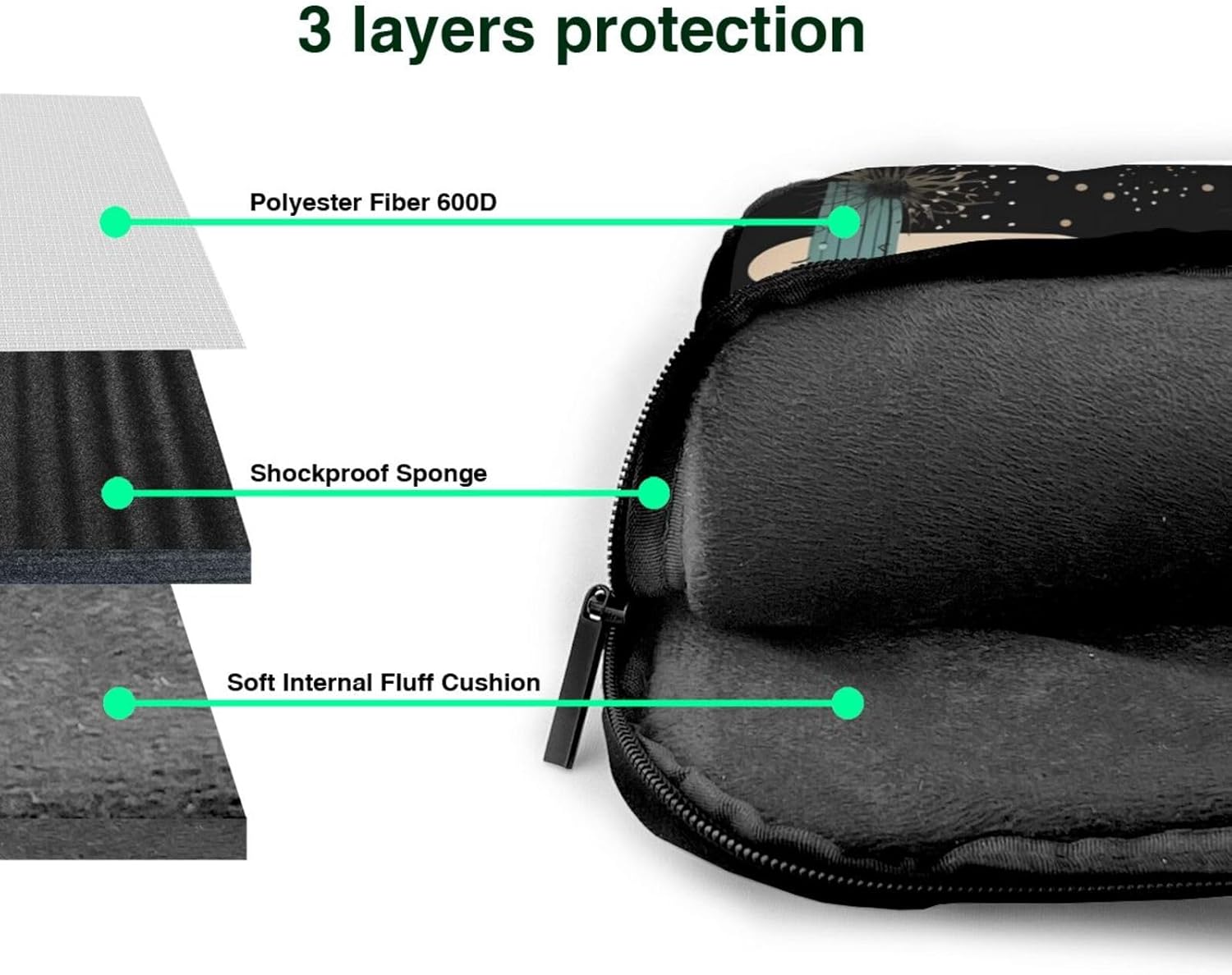 The laptop case features a thoughtful design for easy access and portability. Equipped with a portable handle, it offers a comfortable grip while on the move. The top opening double zippers glide smoothly, allowing for hassle-free device retrieval. The zippers also open freely from 90 to 180 degrees, providing convenient access to your laptop. Its slim and lightweight profile ensures that it doesn't add bulk to your items, making it easy to slide into a briefcase or backpack bag.Crafted from soft fabric, our laptop sleeve offers reliable protection against dust, dirt, bumps, shocks, and accidental scratches. The polyester foam padding layer inside provides an extra cushion to absorb shocks and impacts, keeping your laptop safe and secure.Perfect for daily use on business trips, travel, office, and more, it keeps your laptop and accessories neatly organized and easily accessible. It also makes a great gift for birthdays or Valentine's Day.Our team is available 24/7 to assist you. Please ensure to check the internal dimensions of our laptop sleeve against your device dimensions to ensure a perfect fit. If you have any questions or need assistance in choosing the right size, feel free to contact us.