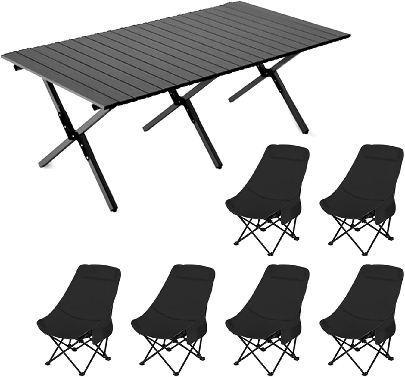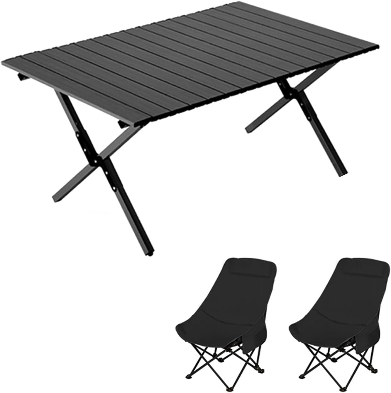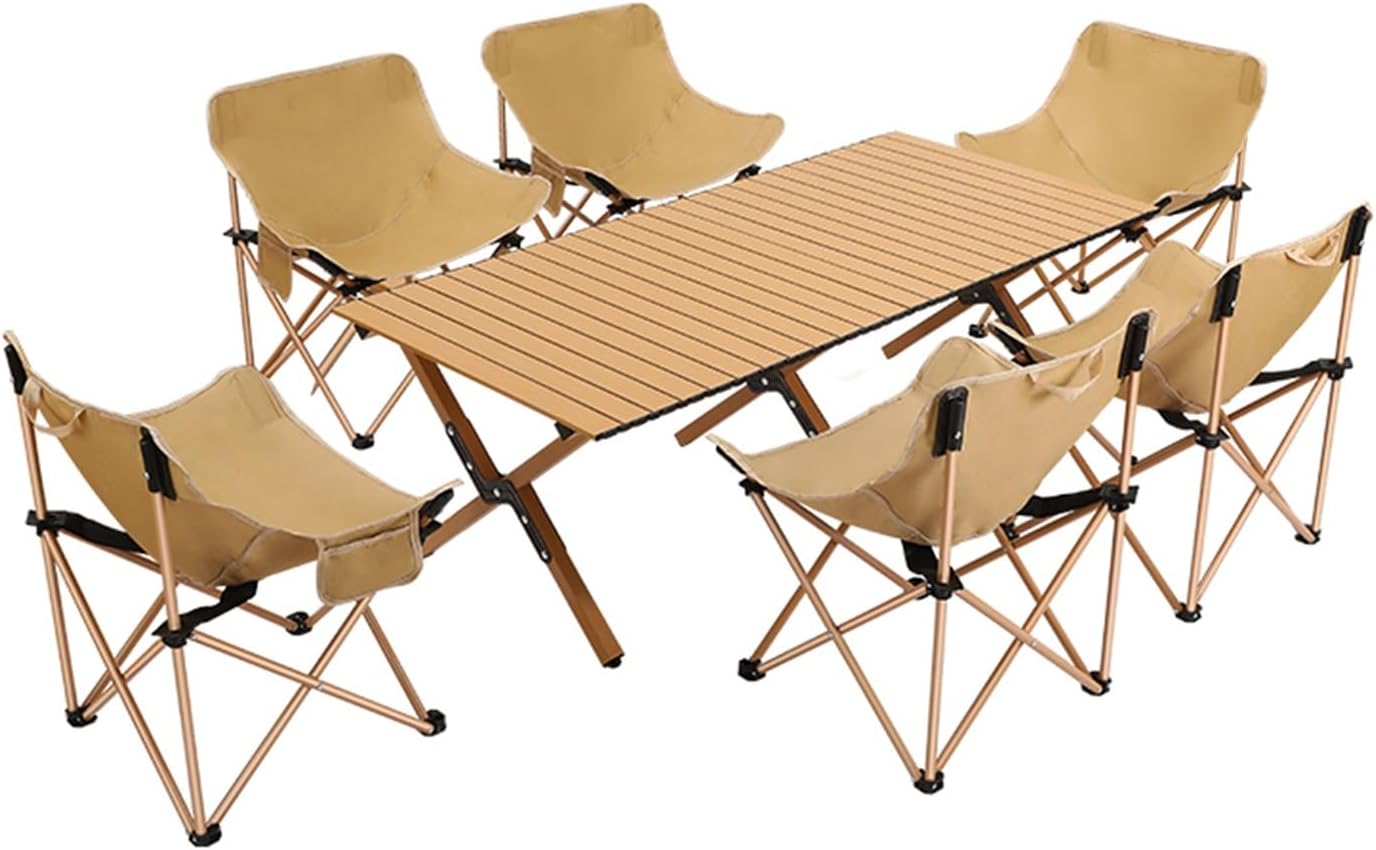 Welcome to my shop~This foldable camping table is thoughtful and practical. Made of carbon steel alloy and durable Oxford cloth, it boasts a sturdy and durable structure. Its sturdy steel legs support a load capacity of up to 200kg and provide a comfortable sitting experience, making it a reliable choice for outdoor camping.It features a large tabletop design, making it convenient for storing items and seating for multiple people. It folds easily for portability and can be unfolded or folded in seconds without tools. It can be used in a variety of settings, both indoors and outdoors, adding to the enjoyment of leisure time.- Name: Outdoor Folding Table and Chair Set- Color: Black, Khaki- Material: Carbon Steel, Oxford Cloth- Table Dimensions: 90*60*42cm/35.4*23.6*16.5in, 120*60*42cm/47.2*23.6*16.5in, 150*60*42cm/59*23.6*16.5in- Chair Dimensions: 44*44*68.5cm/17.3*17.3*27in, 42*42*91cm/16.5*16.5*35.8in- Suitable for various outdoor occasions: camping, picnics, family outings, garden parties, RV vacations, hiking, fishing, barbecues, travel, and parks- Includes: Folding camp chairs, folding table, and carrying/storage bagSafety warning: When used outdoors, chairs must not exceed a weight of 100 kg and tables must not exceed a weight of 75 kg. Please ensure that the table is properly installed and secured.