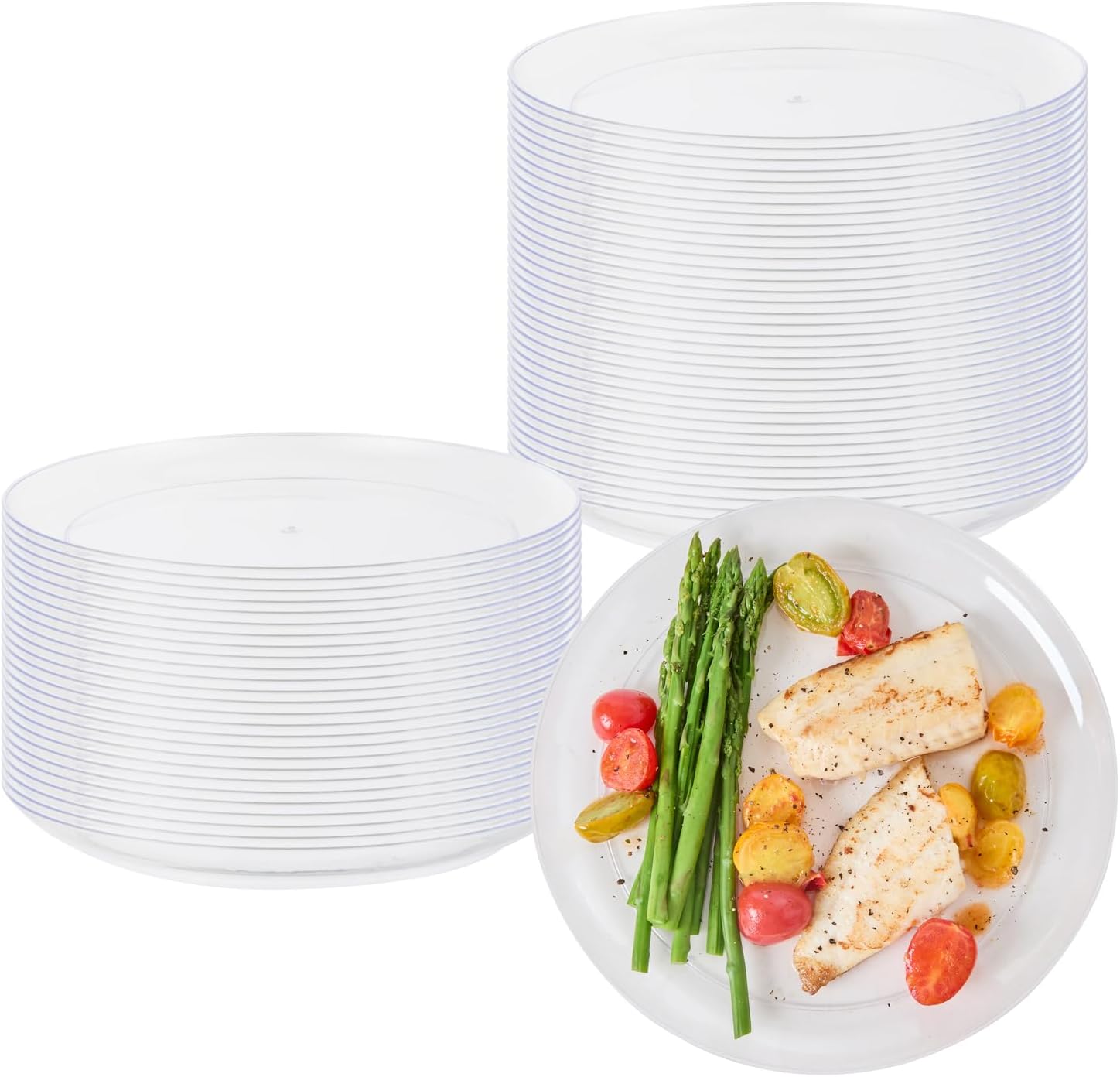 Embellish your serving style with a captivating touch with our Maxi Serve Round White Plastic Elegant Plates. These sturdy plastic dinner plates do not chip or break, ensuring durability. With a disposable design, these durable dinner plates can be easily discarded after use. With an elegant white finish, these disposable plastic plates add elegance and sophistication to any catered event, restaurant, or other foodservice establishment. These white disposable plastic plates measure 9 inches in diameter. Sold in a 100 count box.